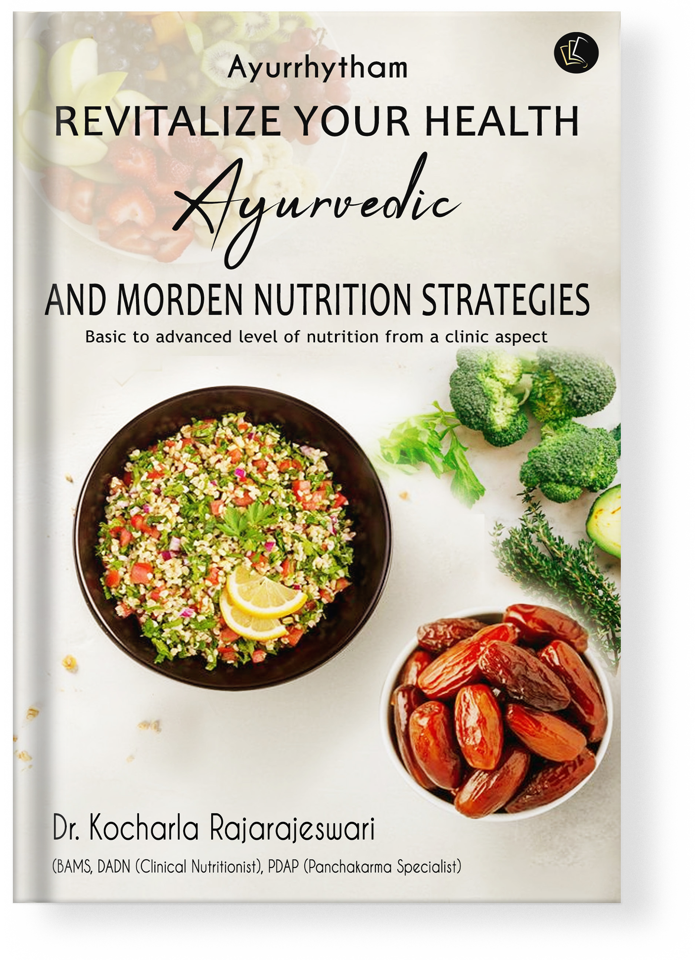Revitalize Your Health: Ayurrhytham offers a unique blend of Ayurvedic principles and modern nutrition strategies. Written by Dr. Kocharla Rajarajeswari, BAMS (Bachelor of Ayurvedic Medicine and Surgery), DADN (ClinicalNutritionist), and PDAP (Panchakarma Specialist), this book delves into basic to advanced levels of nutrition from a clinical perspective, making it accessible to everyone interested in optimizing their health.